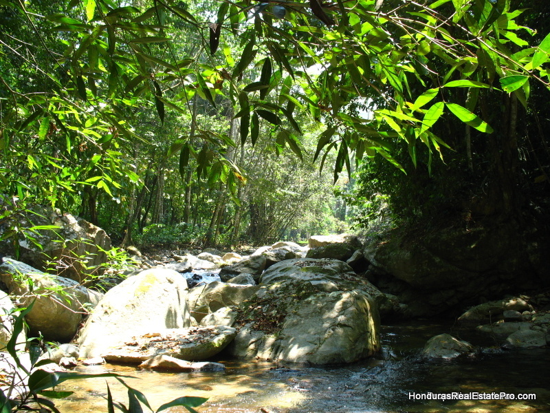 There is plenty of land to raise cattle and grow mahogany, cacao, plantain, rambutan, or other crops to export. One thousand mahogany trees are already growing on the property. Pure water comes from a spring above the property, and a creek runs through the property for most of the year.